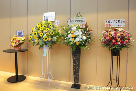 ロビーにはにぎやかに祝い花が飾られていた。